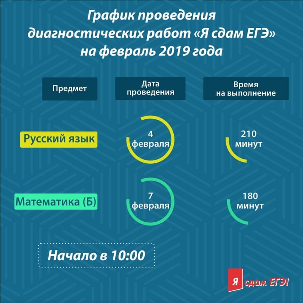 График проведения диагностических работ "Я сдам ЕГЭ" на февраль 2019 года.